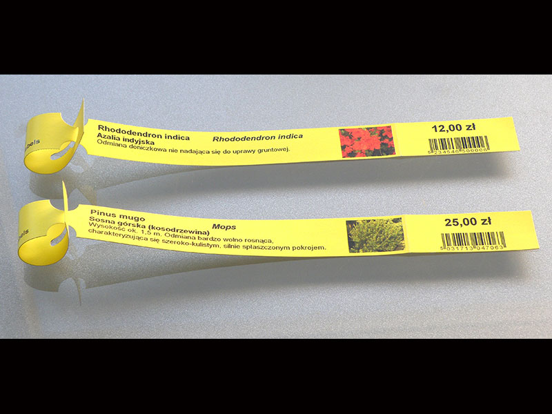 Najwyższej jakości etykiety obustronnie żółte o wyraźnych i trwałych kolorach zadruku, miękkie i łatwe w oddzielaniu. Wersja z oddzieralną końcówką.