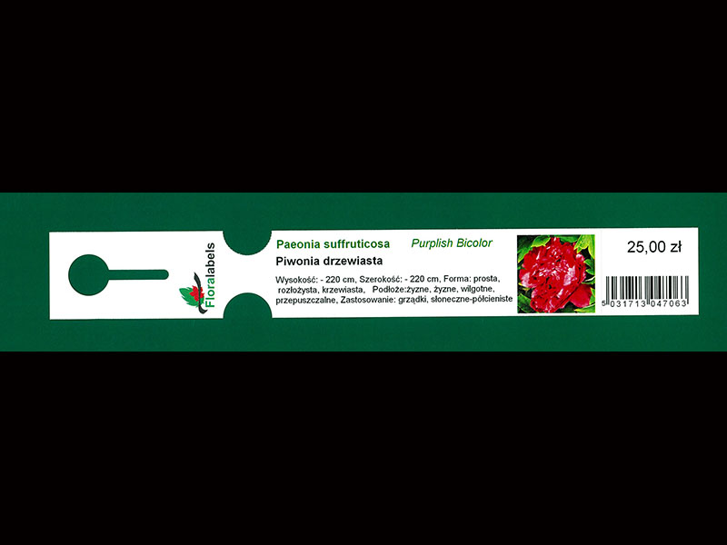 Ekonomiczna etykieta do laserowego zadruku kolorowego, trwałość 1-2 miesiące. Wersja z oddzieralną końcówką. Opis materiałów: http://floralabels.pl/rodzaje-materialow/