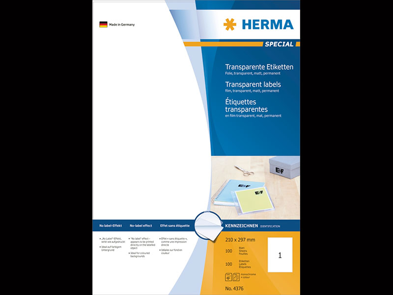 Etykiety samoprzylepne przezroczyste matowe 210 x 297 mm (100szt)