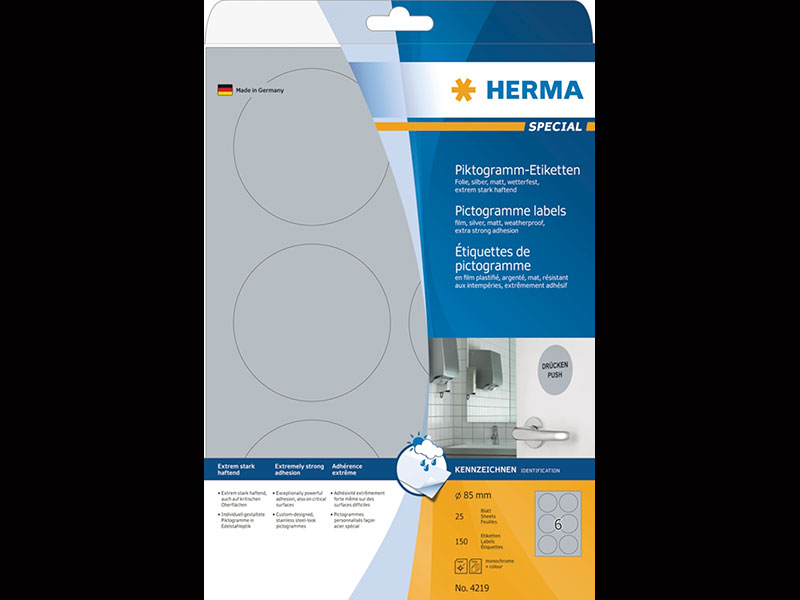 Odporne na warunki atmosferyczne, trwałe, nie wchodzą w reakcję z wodą, olejem i brudem. Zmywalne wodą, benzyną, alkoholem. Zachowują swoje właściwości w temperaturach od -40 do +150°C. Idealne na zewnątrz: na tabliczki znamionowe i informacyjne, do oznaczania materiałów budowlanych, do zastosowań w produkcji i magazynach, ekstremalnie mocno przylegające.