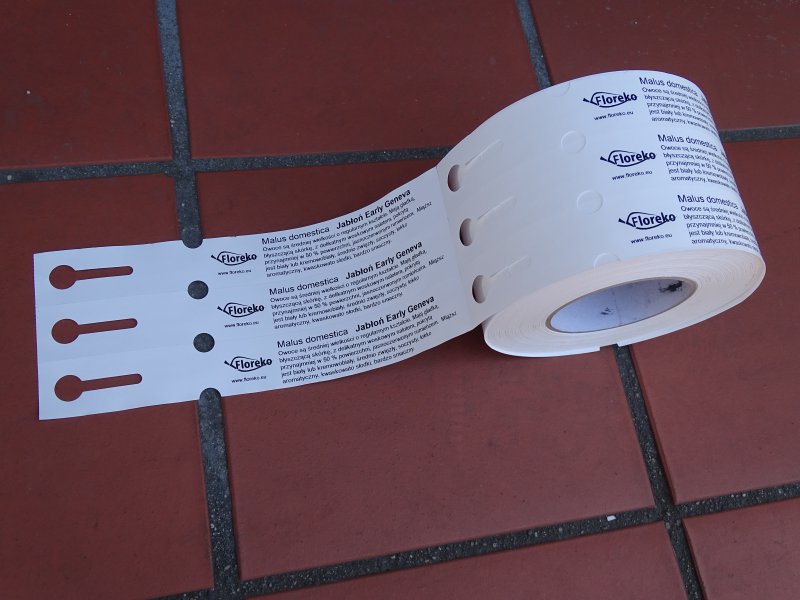 Etykiety w rolkach przeznaczone do zadruku na drukarkach termotransferowych biurowych i przemysłowych, w których fotokomórka - czujnik odstępu etykiet nie może być umieszczony na stałe, powinien być przesuwny, tak by go umieścić w odpowiednim miejscu. Aby wydruk był trwały należy używać taśm/folii żywicznych.